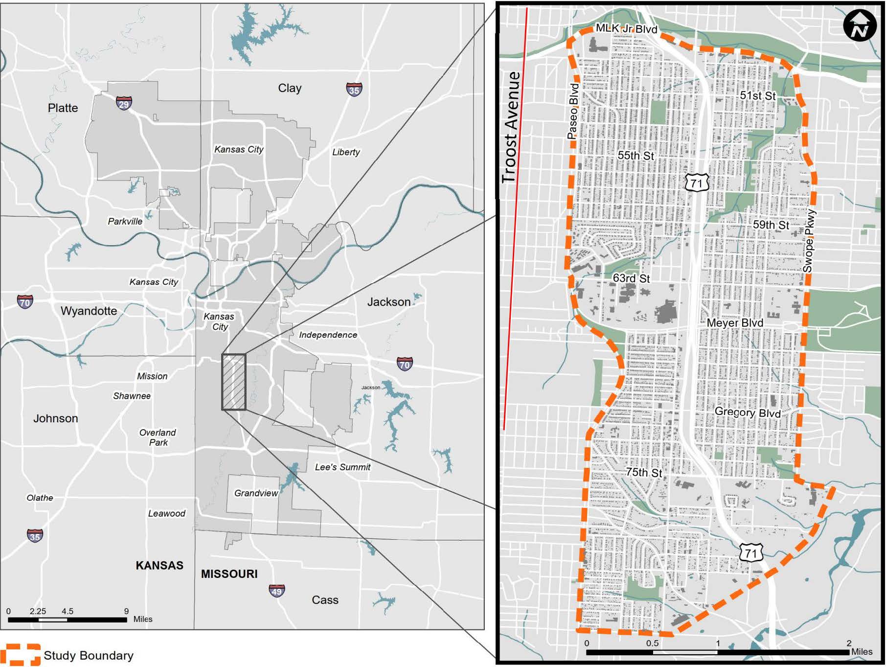 - Area of Influence: The project’s area of influence is bounded by Paseo Boulevard to the west, Swope Parkway to the east, Martin Luther King, Jr. Boulevard to the north and East 85th Street to the south.